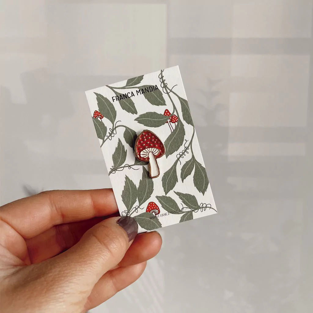Este pin es un diseño original hecho artesanalmente en metal dorado y esmaltado a 2 colores.